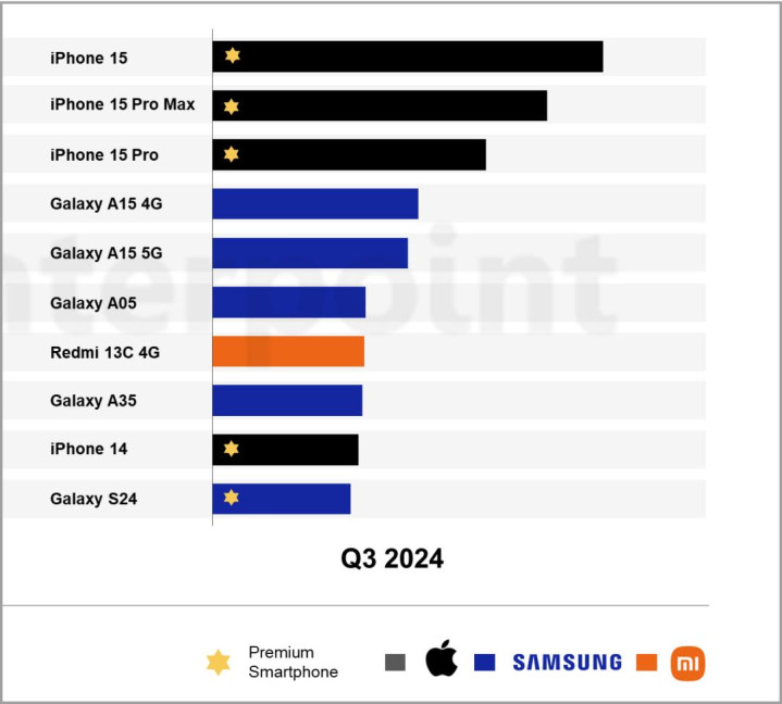 有趣的是,去年小米凭借全球市场的红米 13C 4G 版本成功冲上了榜单,是唯一上了全球销量排行榜的国产手机。